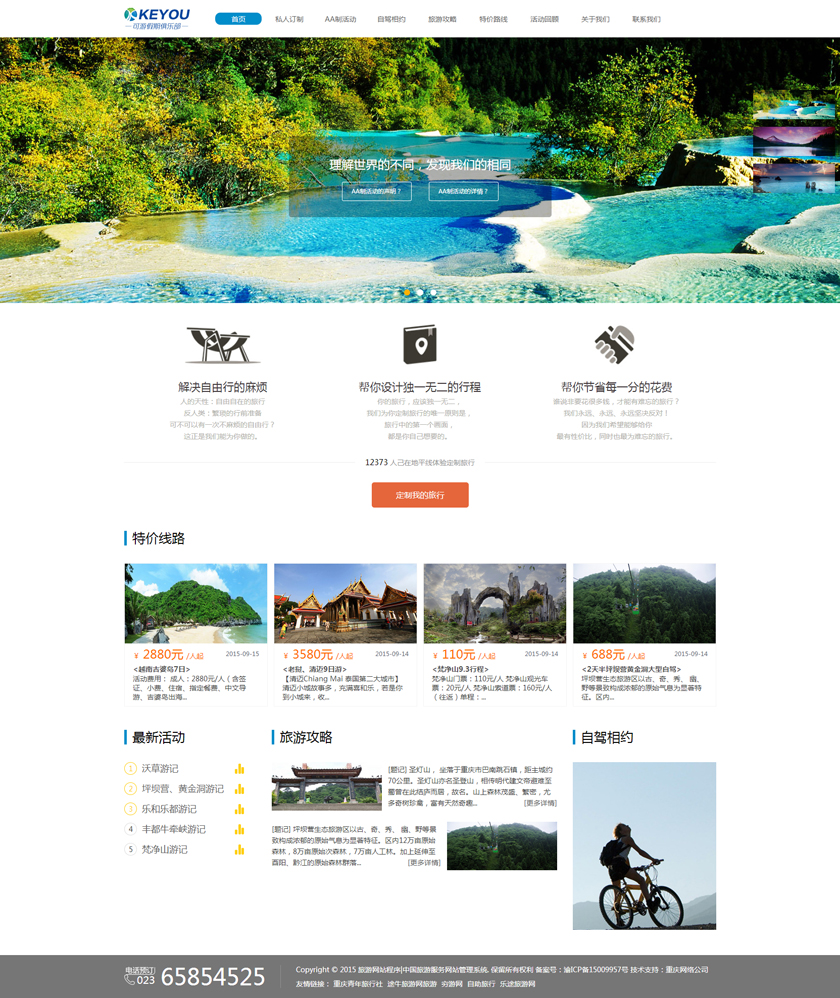 Project Description 6人游旅行网隶属于北京六人游国际旅行社有限公司。打造“为爱出行”:专为家庭,朋友,情侣间的旅行,提供私家小团精品游。打造高品质的旅行产品,解决传统跟团游和自由行存在的问题,将旅行服务做到臻善臻美。 Official website address 运城http://www.keyoujq.com I want to share