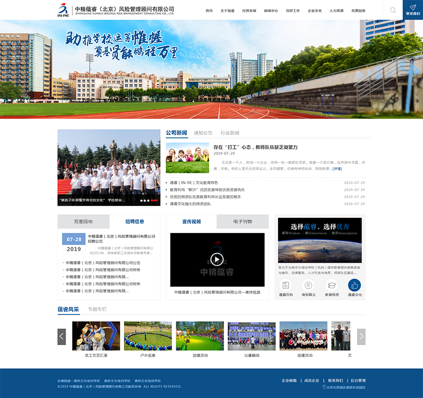 Project Description 中精蕴睿(北京)风险管理顾问有限公司2013年,现有教职工及各科目教育专家80多人,致力于为各中小培训学校(机构) 提供教育相关政策咨询与指引、法律服务、人才引进与培养、师资队伍建设与培训、教学教研与学科创新、市场营销企划、文化 理念塑造与品牌输出的专业化教育管理全方位的综合服务。 Official website address 运城http://in-re.com/ I want to share